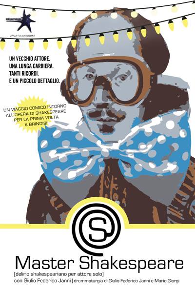 Un anziano attore ripercorre i propri successi. Ha dato corpo ed anima a tutti i personaggi di Shakespeare, esibendosi nei teatri di città come nei cinema di provincia, tra applausi fragorosi e sempre attorniato dall’affetto degli ammiratori. Nella sua lunga carriera, tuttavia, non sono mancati gli inciampi, gli incidenti, le rivalità, i fischi, le fughe, le figuracce, le bettole, gli impresari sul lastrico, le liti di compagnia: insomma, quel variegato e complesso universo che chiamiamo teatro. La sua voce dice di lui: “Sono stato l’idolo di dodici continenti e di otto emisferi”. È solo quando irrompe sulla scena che scopriamo che ha sì e no quarant’anni! Quei ricordi, in realtà, appartengono a qualcun altro, per la precisione ad Anew McMaster (1894-1962), l’ultimo dei grandi capocomici britannici non ancora immischiati nello showbiz. Il grande drammaturgo Harold Pinter, insignito del Nobel per la letteratura nel 2005, gli ha dedicato un breve racconto-saggio, che ha ispirato questo spettacolo in scena per la prima volta a Brindisi. Il giovane attore si è quindi volontariamente introdotto nella carcassa del vecchio attore, e da lì prende il coraggio per affrontare alcuni brani del repertorio shakespeariano. Master Shakespeare è dunque una sorta di teatro nel teatro, con al centro un protagonista in preda ad un delirio originato dalla grazia e dalla purezza dei testi del Bardo. A 500 anni dalla morte di William Shakespeare, il teatro Kopó Brindisi omaggia il suo genio attraverso il lavoro di Giulio Federico Janni, attore di lungo corso che, negli ultimi dieci anni, è stato diretto diverse volte da Alessandro Gassmann. La rievocazione di Anew McMaster, ancorché buffa, grottesca, divertita e divertente, esalta le qualità di comico di Janni, perfettamente a suo agio nella maschera che si è scelto, ma capace anche di rendere conto della nostalgia per quel tempo in cui stare di fronte ad un pubblico attento era l’unica forma di spettacolo.
