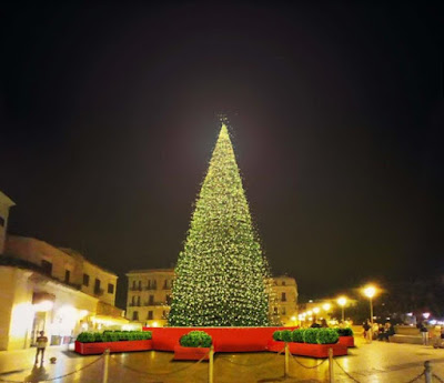 E veniamo al punto più ‘energetico’ della piazza, quello dove sarà installato un grande albero ecologico, di colore verde, alto 15 mt e dal diametro di 4 mt. Anche il maestoso albero sarà illuminato con led bianchi a luce calda e sarà poggiato su un grande palco circolare dal diametro di 10mt, di colore rosso, che servirà per ospitare tutti gli eventi del mese fino al 6 gennaio.