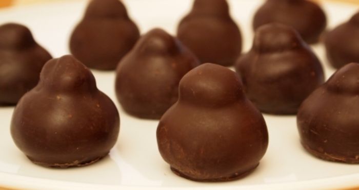 Quando il cioccolato sarà sciolto, intingi ogni pallina immergendone prima la base nel cioccolato e, dopo averla poggiata su un foglio di carta oleata, procedi a far scivolare su ogni bacio una giusta colata di cioccolato.